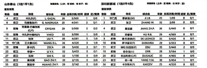 直播吧04月11日讯北京时间19点35分,中超第6轮,山东泰山vs深圳新鹏城,赛前双方首发公布。